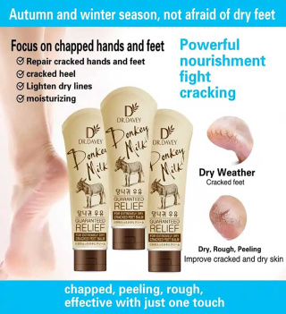 کرم رفع ترک پا دکتر دیوی DR.DAVEY سازنده P.R.C حجم 100 گرم حاوی شیر الاغ Donkey milk مناسب برای پوست های خشک و خشن از بین برنده ترک نرم و لطیف شدن کف پا
